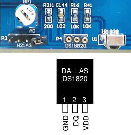 DS18B20 chip is inserted in the socket boards P1, if inserted in the wrong direction, the chip WILL BE DAMAGED. When using, please be careful when you insert the DS18B20 chip into the development board socket P1 in the correct direction: DS18B20 The chip Text faces the outer edge of the development board, as shown below : 2, 1602 LCD installation direction