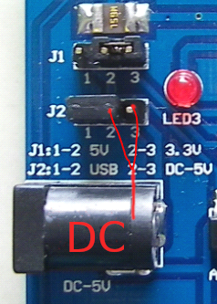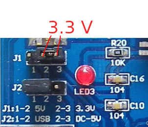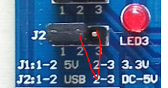 *2 , the development board is powered by an external power supply (when J2 is connected to 2-3 position)