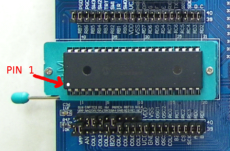 Pin 1 of the MCU is close to the handle of the green zero-pull insertion socket (ZIF socket), as shown below: Main component mounting direction