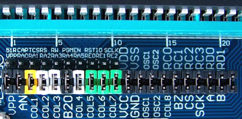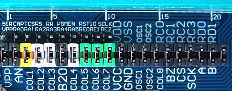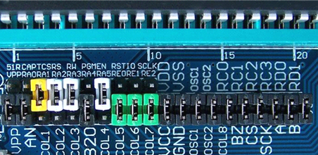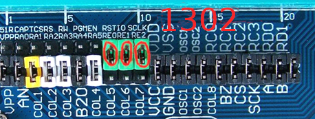 RA5-COL4 , RA1-COL1: When using the DS1302 real-time clock, set the connection zone (lower) from left 8, 9, 10 of the link 3 shorting