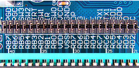 Up All short-circuit links, then in the upper row of the P22 socket (that is, the side marked with PICKIT2, plug in type B 6 core Line (the one with flat heads on both sides), the other end of the B -type 6- core cable and other development boards or user-made application Board ICSP interface.